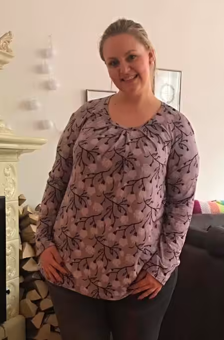 Genäht wird das Shirt aus leichten Jerseystoffen. Möchtest Du Viskosejersey verarbeiten kann eventuell eine Nr. kleiner genäht werden.