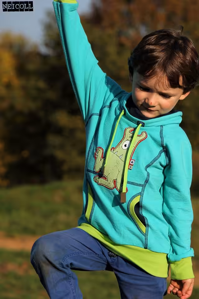 Comet ist ein sportlicher Hoodie, welcher in Weite und Länge größengerecht ausfällt. Er hat vorne und hinten seitliche Teilungen und eine hochgezogene Kapuze, deren Teilung optisch in die Raglannähte des Hoodies übergehen.