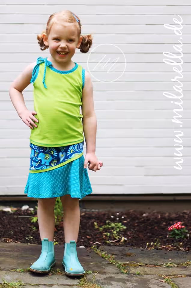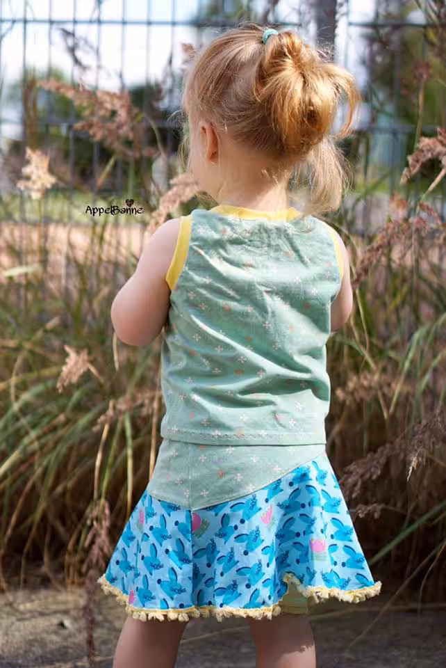 Das Schnittmuster beinhaltet die Doppelgrößen 86/92-158/164.