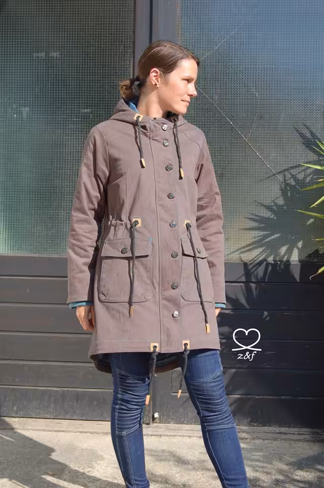 Für den Außenstoff eignen sich alle undehnbaren Jackenstoffe, wie nicht zu dünne Webwaren, Twill, Wollstoffe, Canvas, Köper, Dry Oilskin, beschichtete Jackenstoffe, Jeans und Cord.