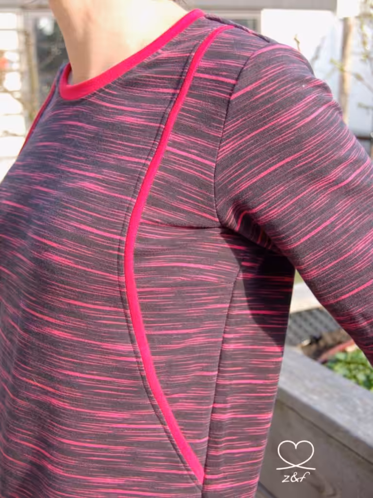 Lady Ruby ist ein Basic Sweatshirt, welches wahlweise mit oder ohne Teilungen am Vorderteil genäht werden kann.