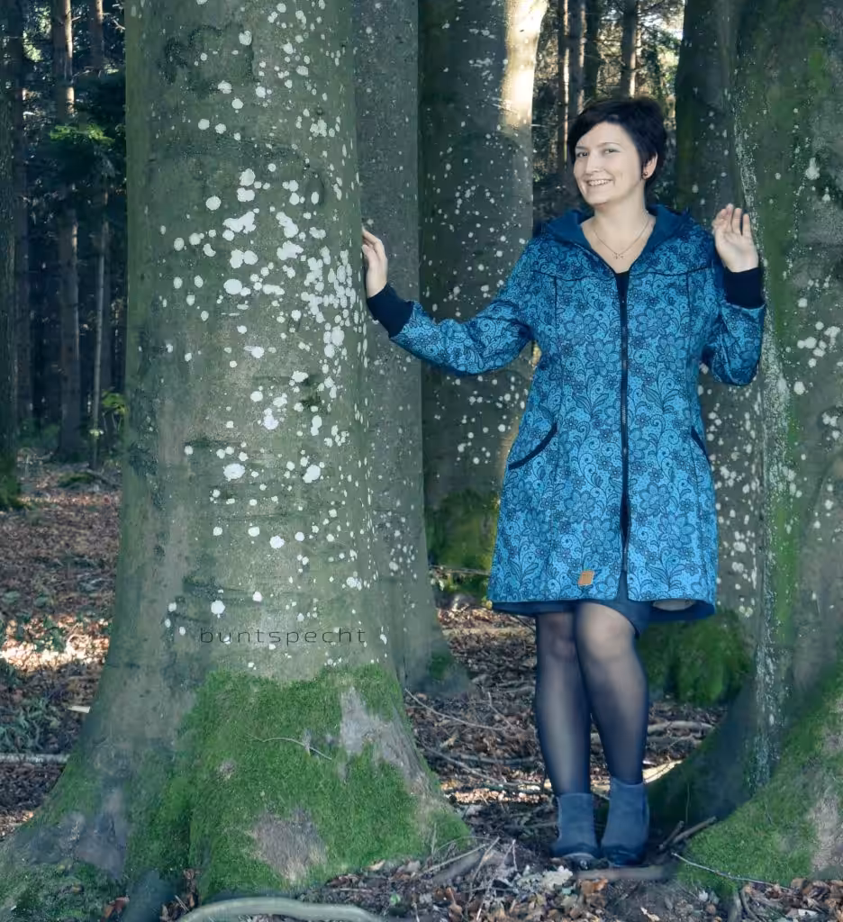 Lady Shiva ist ein gefütterter Übergangsmantel, der durch die vielen Teilungsnähte eine tolle Figur macht.