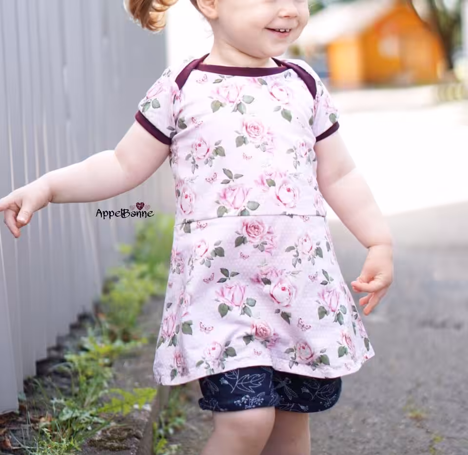 Little Ophelia kann als einfaches Basicshirt oder Kleid genäht werden. Im Schnittmuster sind verschiedene Ärmeloptionen enthalten.